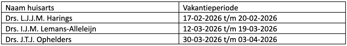 In onderstaand overzicht hebben wij weergegeven wanneer de artsen met vakantie zijn.